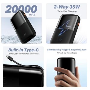 Ambrane MiniCharge 20 20000mAh Power Bank with 22.5W Fast Charging & Built-in Type-C Cable