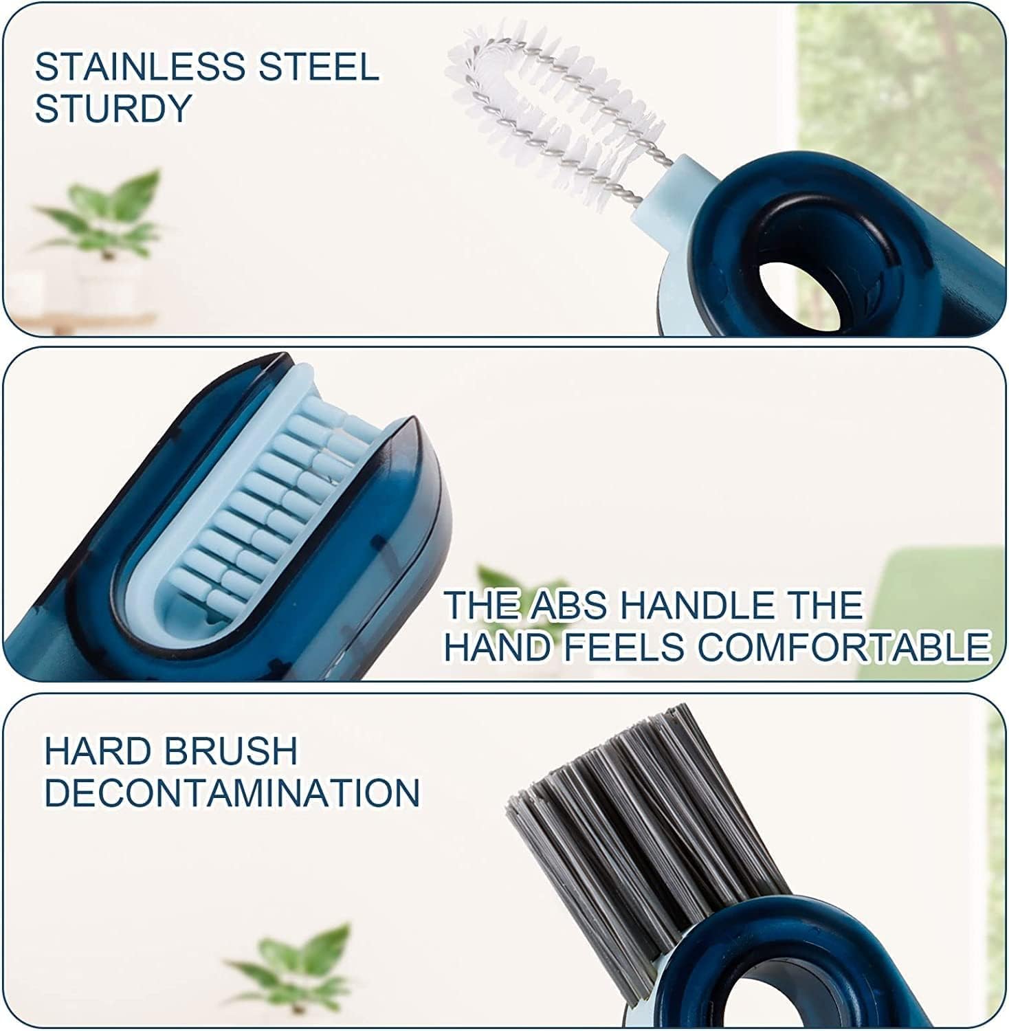 3-in-1 Design: Includes U-shaped brush for cup rims, narrow groove brush for lids, and hard-bristle corner brush for deep corners