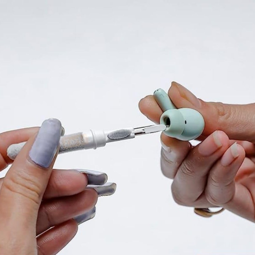 • 5-in-1 Multifunction Cleaning Tool: Includes a nylon brush, flocking sponge, high-density brush, and metal pen tip for comprehensive cleaning in one compact device.
