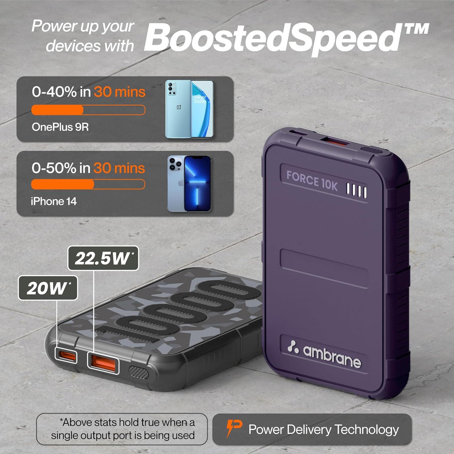 - 22.5W fast charging (BoostedSpeed) for quick power delivery