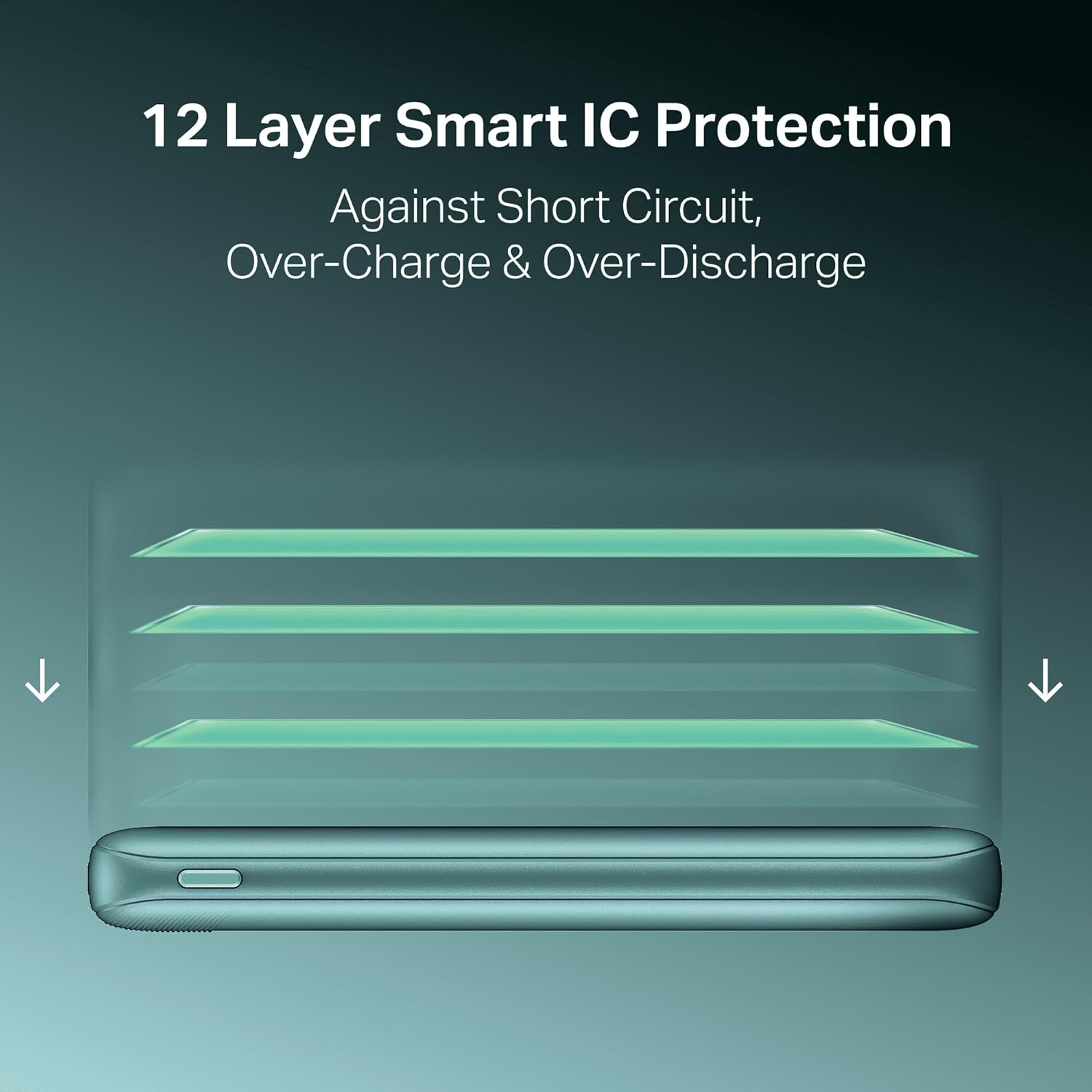 Charge your devices while the power bank is charging simultaneously. - 12-Layer Smart IC Protection