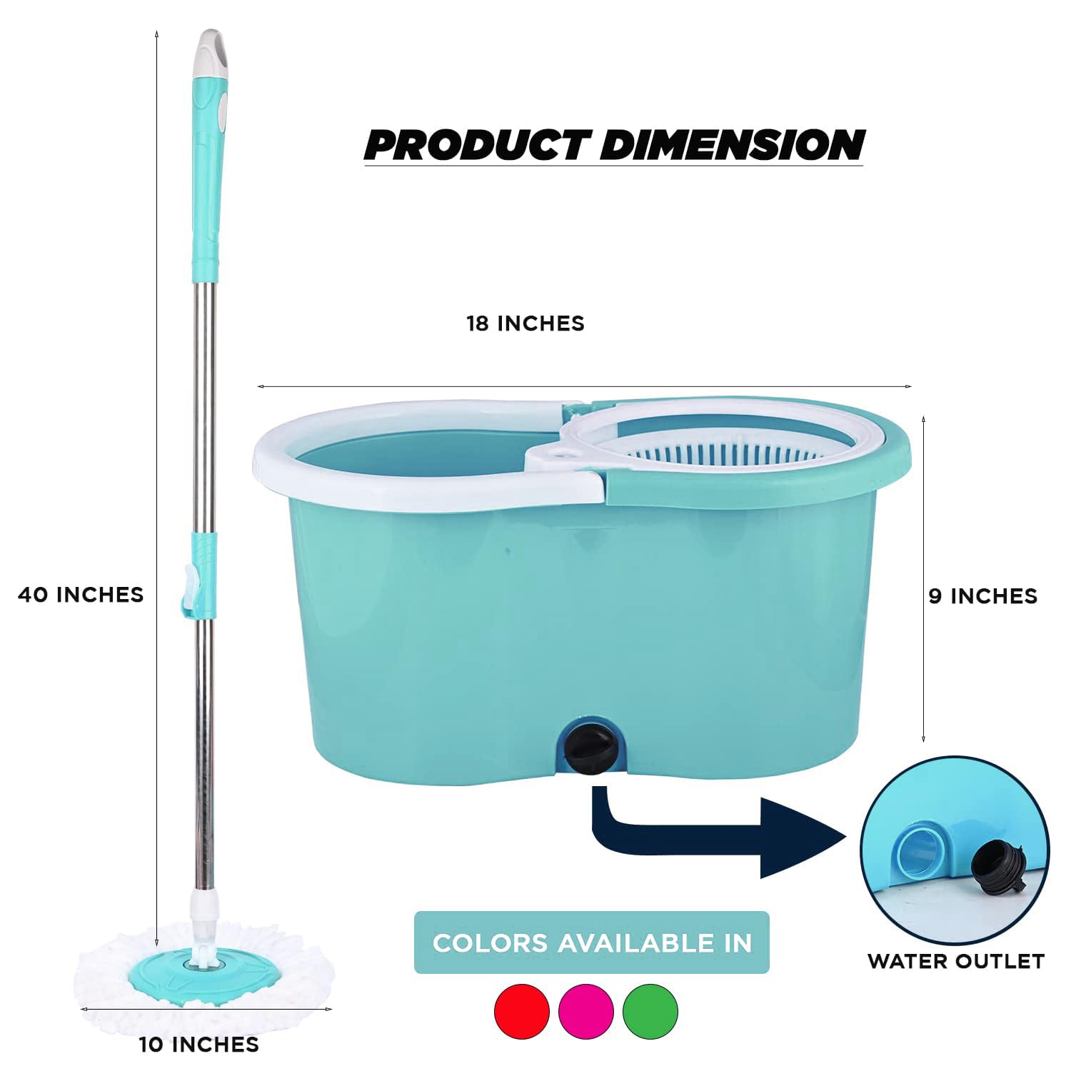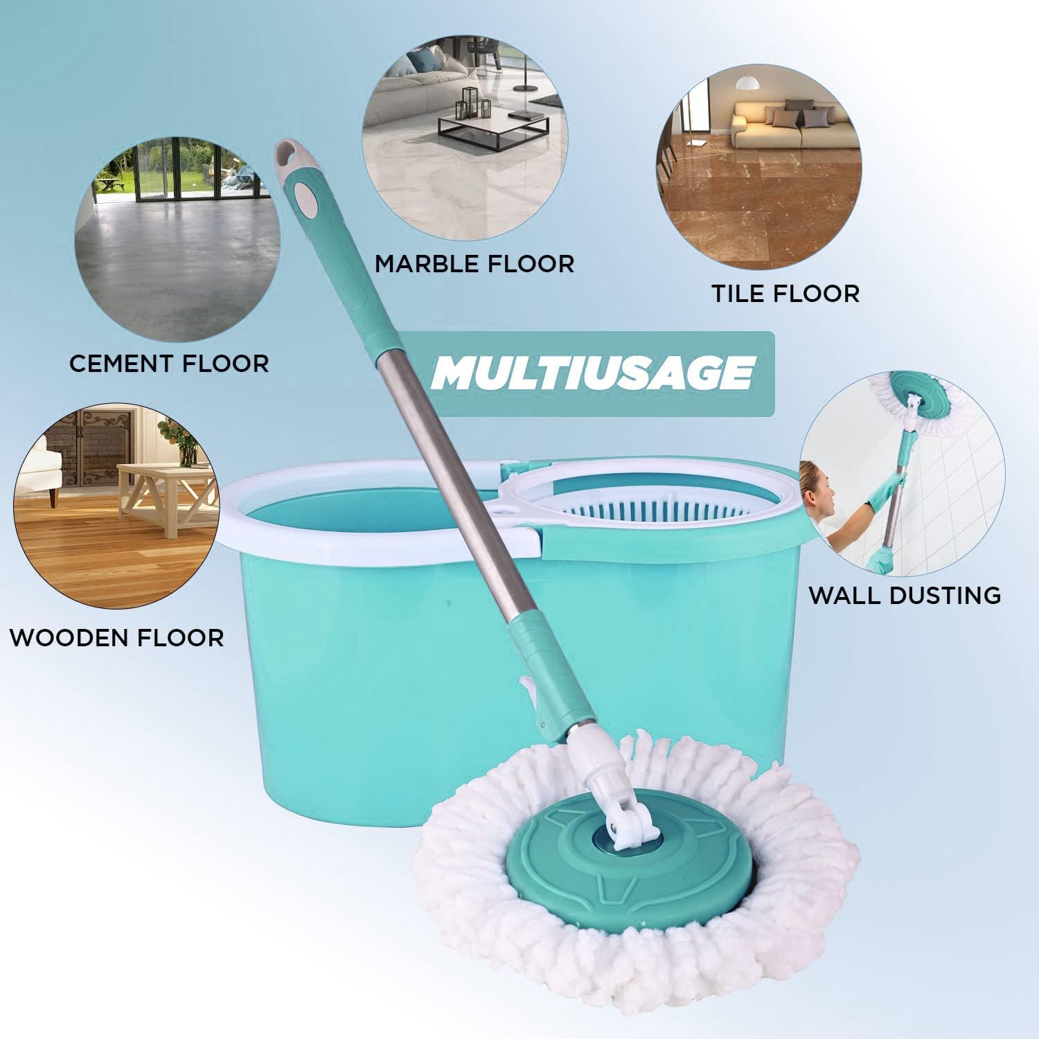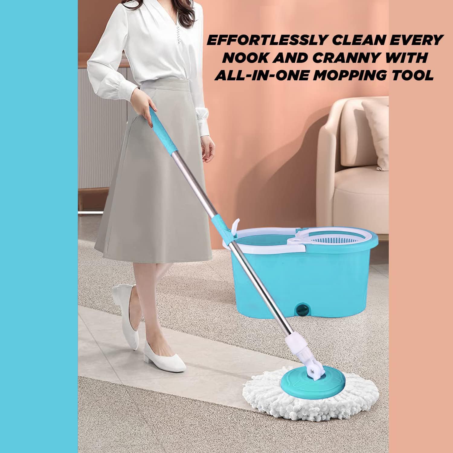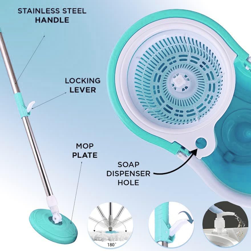 • 360° Rotating Mop Head: Smooth full rotation ensures easy cleaning of corners, edges, and areas under furniture.