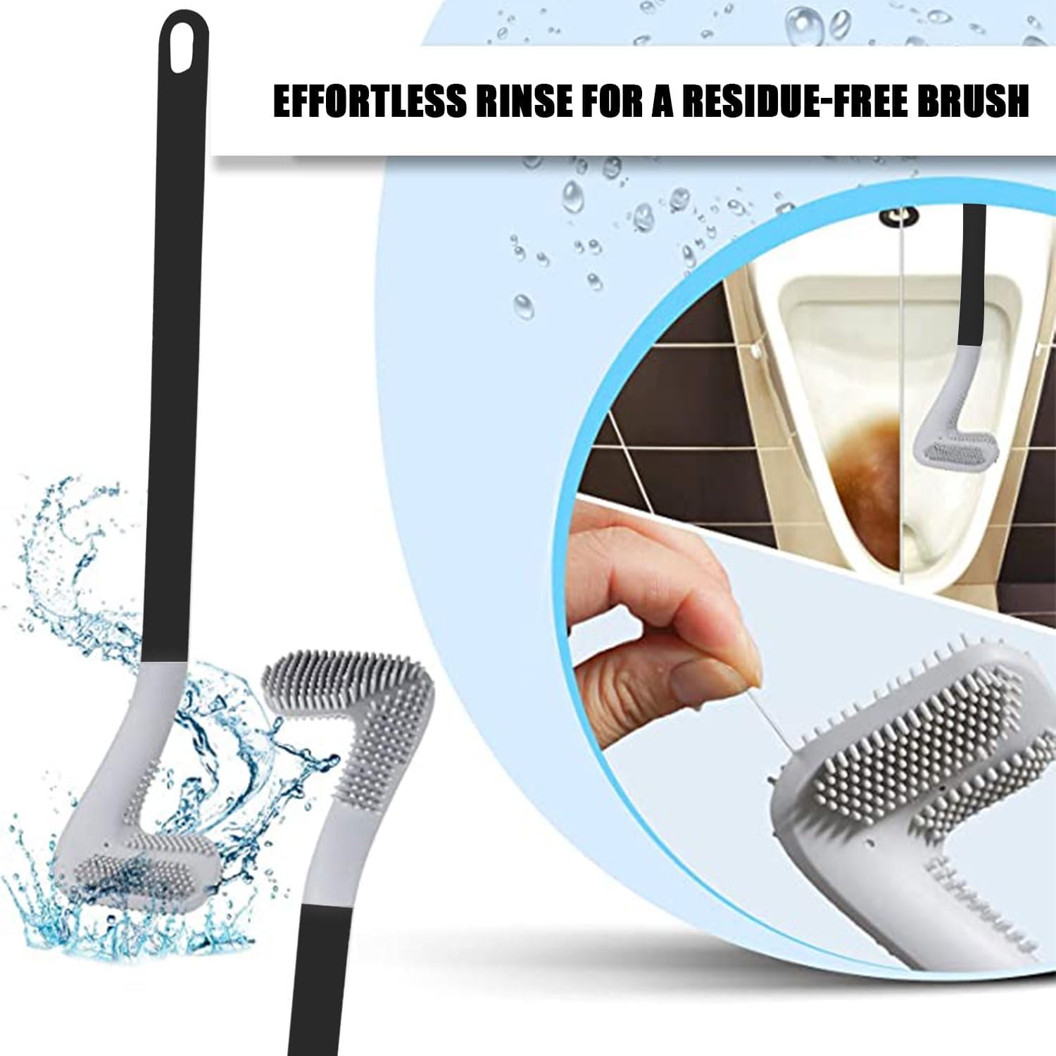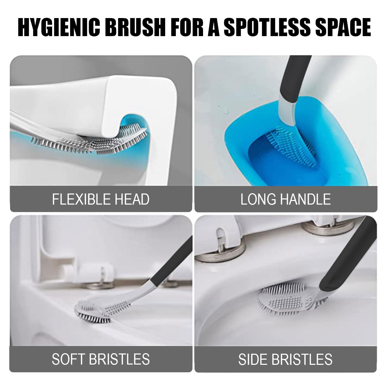• Soft Non-Scratch Silicone Bristles: Moderately soft, flexible bristles clean effectively without scratching or damaging toilet surfaces.