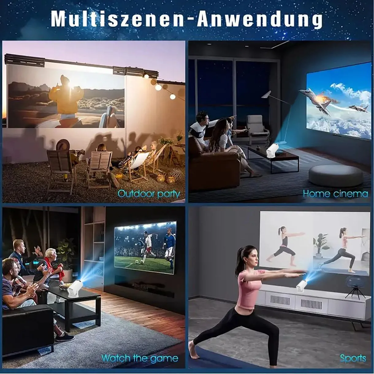 This mini projector features a built-in Android 11 operating system, giving you effortless access to a wide range of content without needing additional devices. With the latest technology and software support, it remains compatible with upcoming services for years to come. The large 200-inch (500 cm) display creates an immersive, cinematic viewing experience—perfect for movies, shows, and entertainment. If you encounter any software compatibility issues, please update the system or contact customer service for assistance. - Dual-Band WiFi 6 & 180° Rotating Design