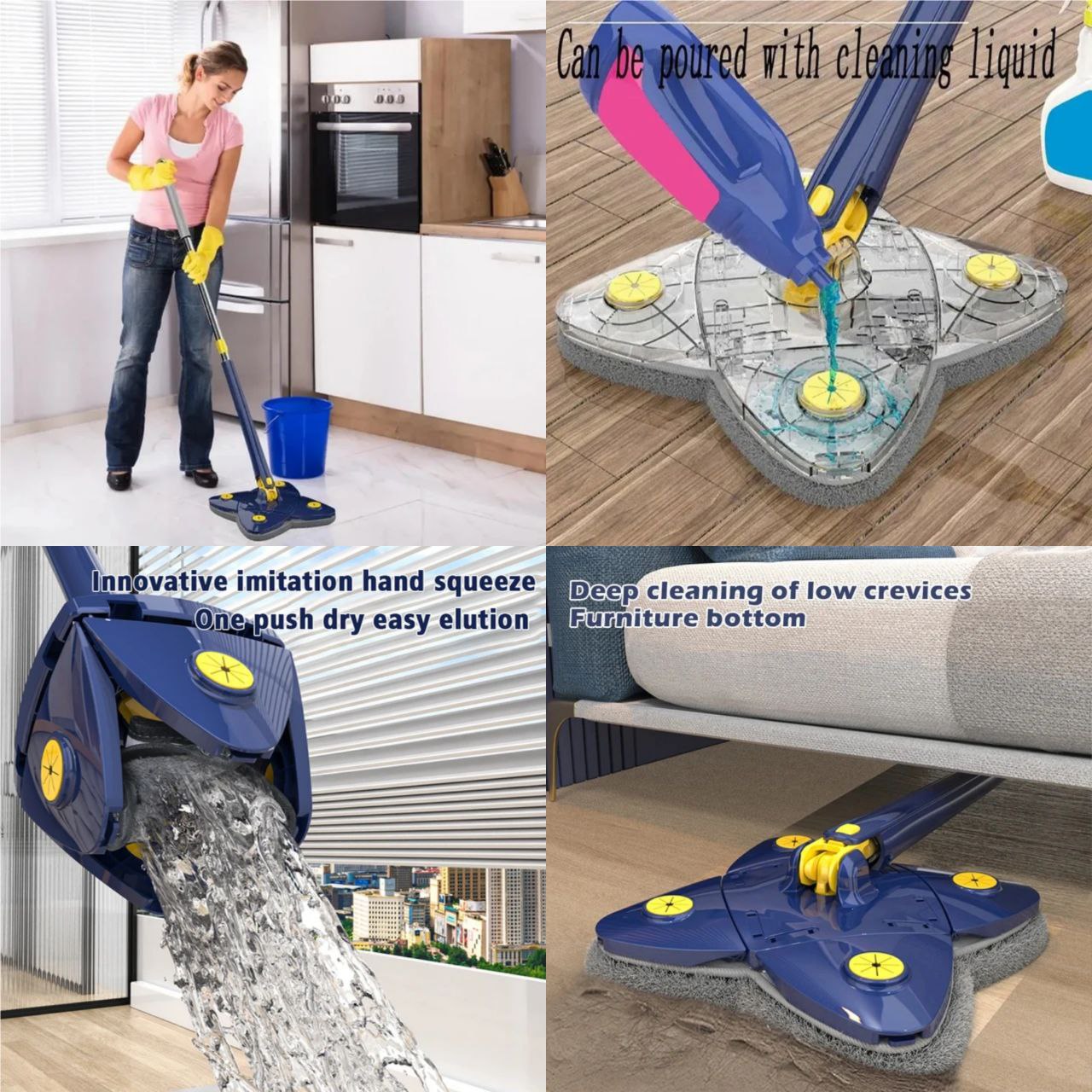 360° Rotating Mop Head: Freely spinning head reaches corners, edges, and under furniture for thorough cleaning.